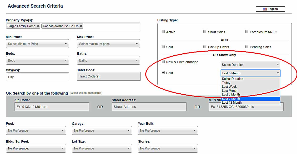Enter City Name & Price Range - Only Choose the "Sold" Check Box